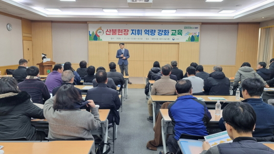 산림청(청장 김인호)은 산불 현장에서 핵심 역할을 수행하는 ‘산불현장 통합지휘본부’ 지휘·운영 인력 약 800명(산림청 및 지방정부)을 대상으로, 21일부터 2월 5일까지 충청권을 시작으로 권역별 순회 교육을 실시한다고 밝혔다.